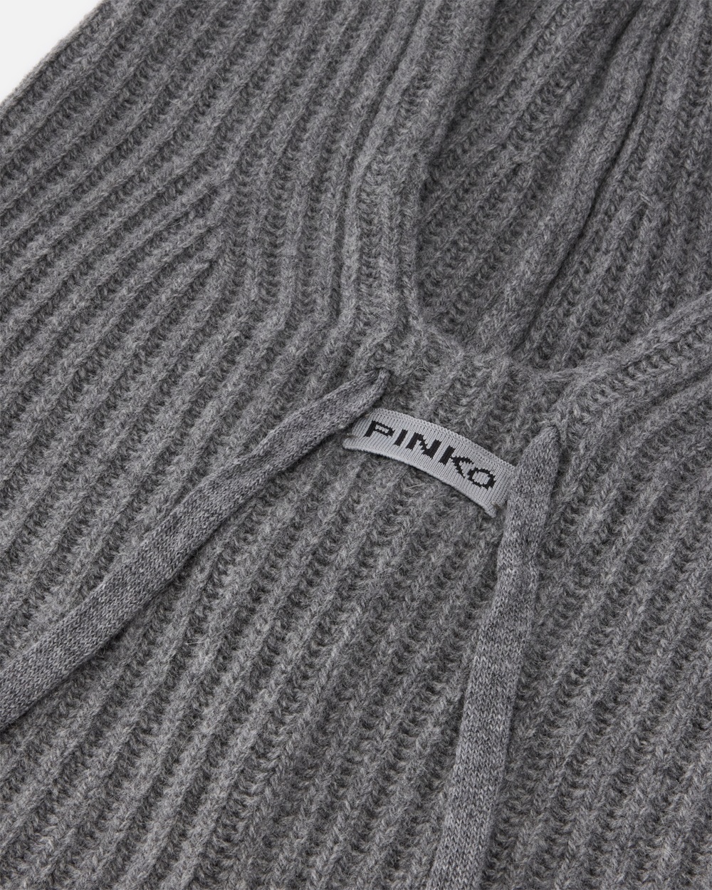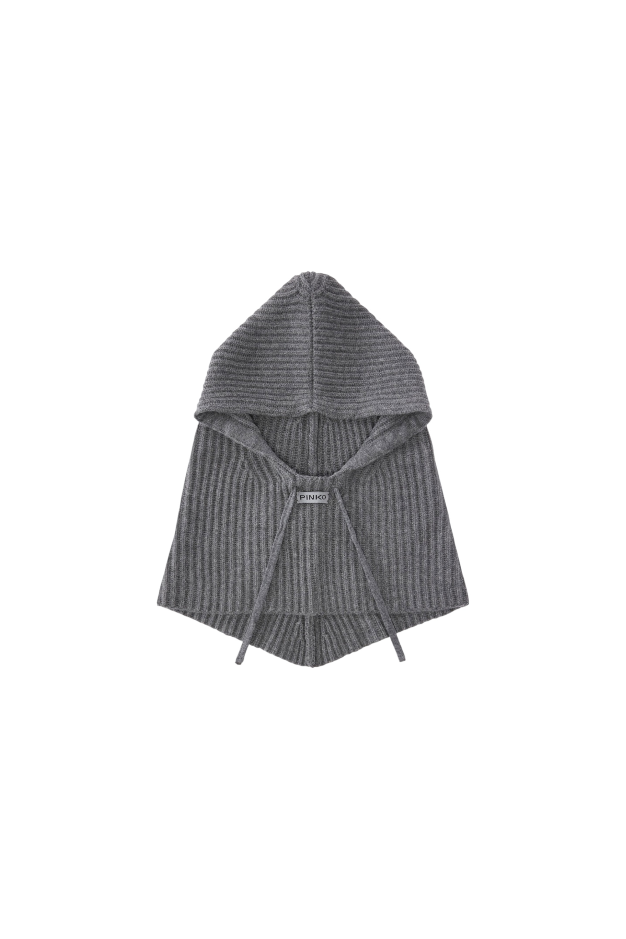 Трикотажная балаклава мягкого силуэта, выполненная из шерсти и кашемира в рубчик, украшена спереди лейблом с буквенным логотипом бренда. Шнурок-кулиска в тон подчеркивает мягкий силуэт и позволяет регулировать посадку.