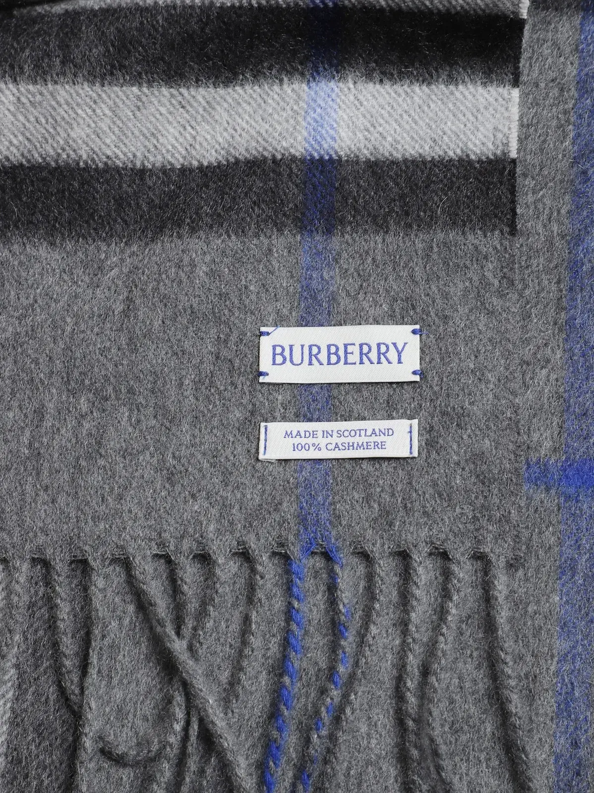 Шарф в клетку Burberry Check из кашемира с акцентными линиями дополнили длинной бахромой.