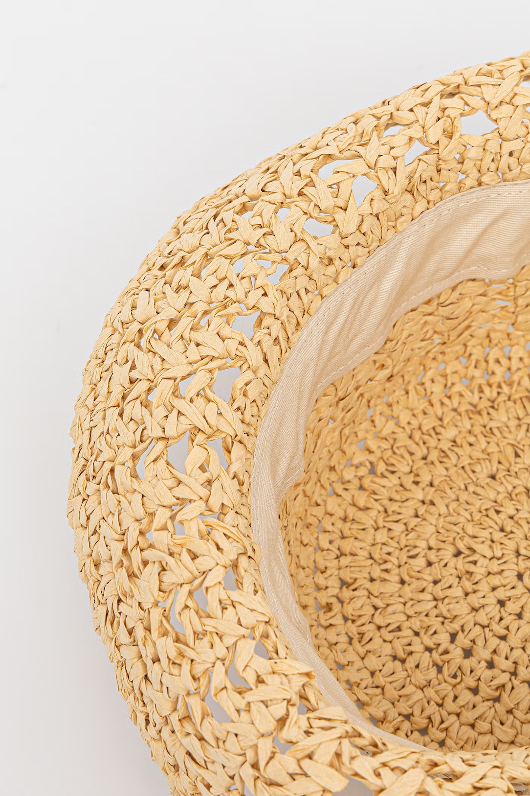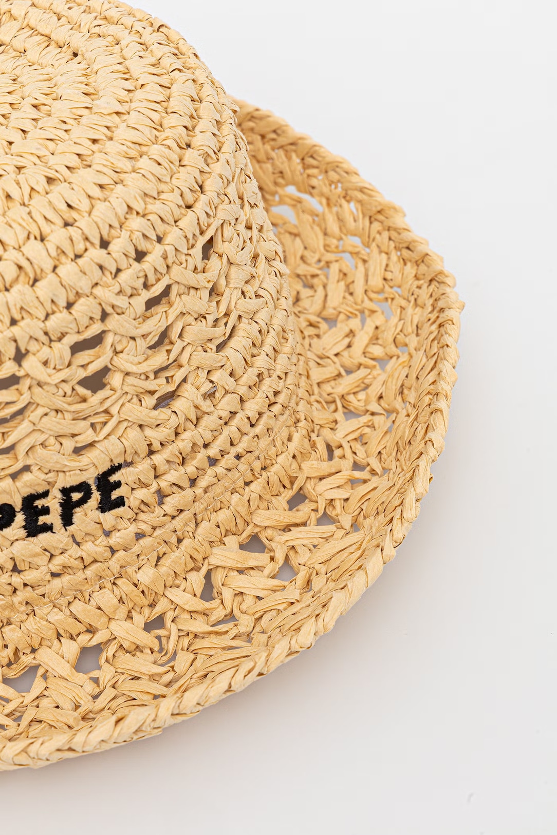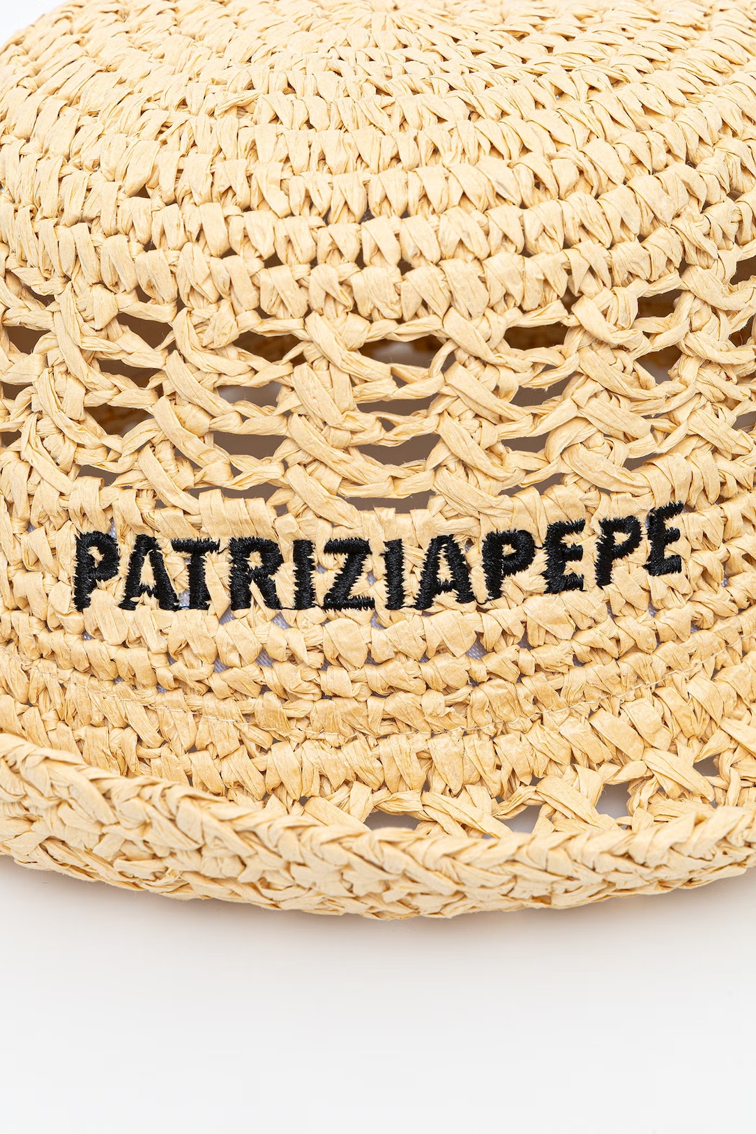 Плетеная шляпа из легкого плетеного материала с гладкой фактурой дополнена контрастным логотипом бренда.