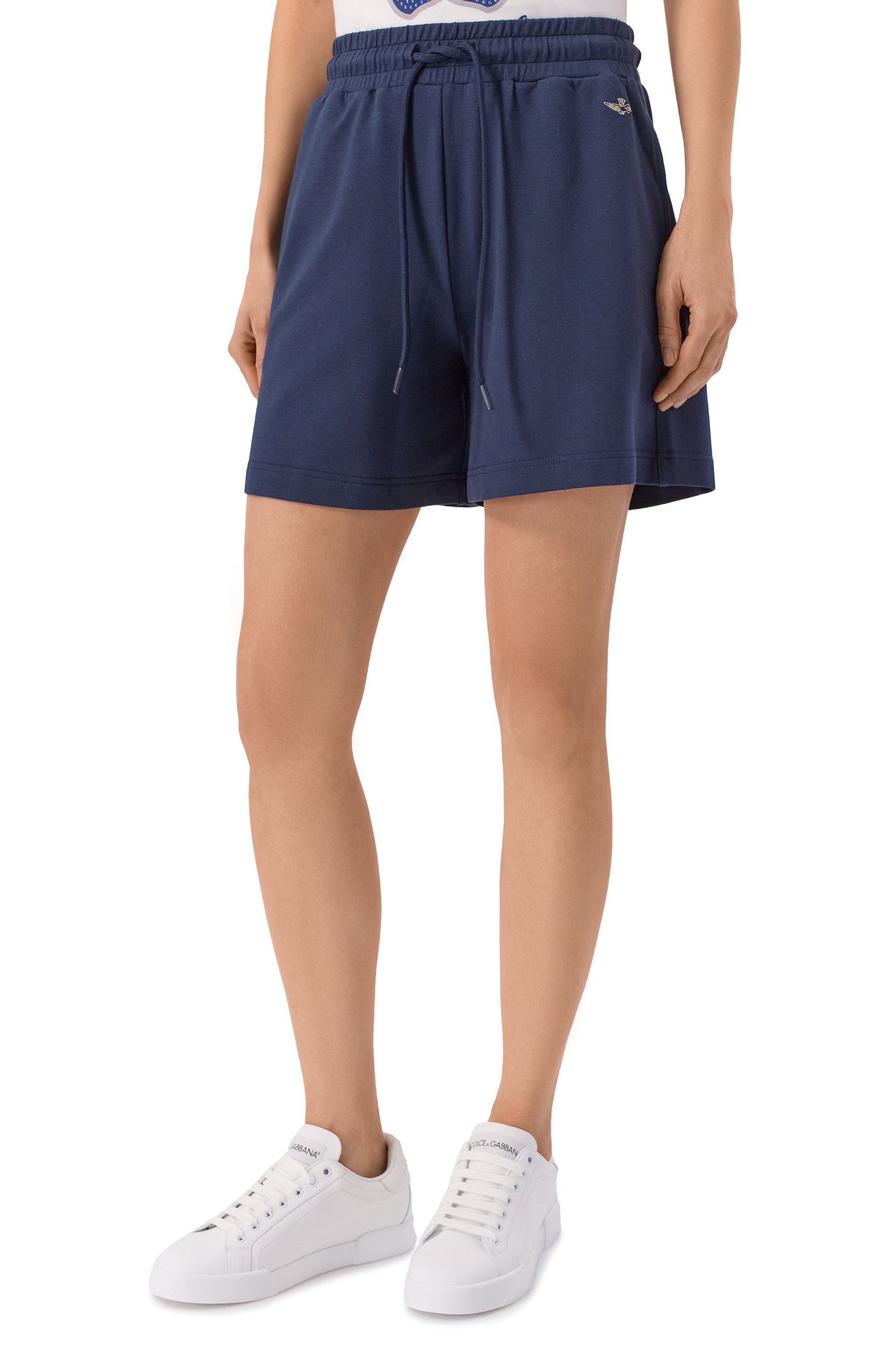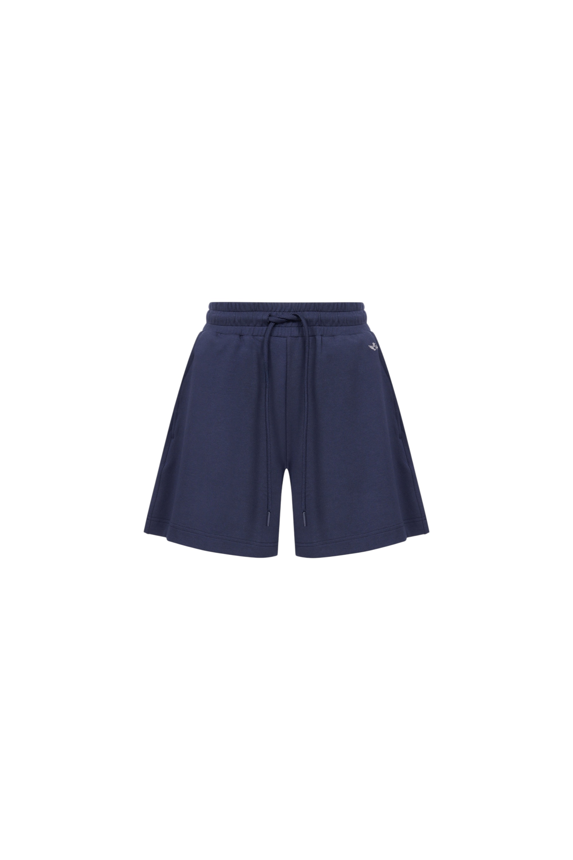 Шорты с широким поясом-кулиской из трикотажа на основе модала и хлопка дополнены двумя боковыми карманами и фирменным логотипом бренда.