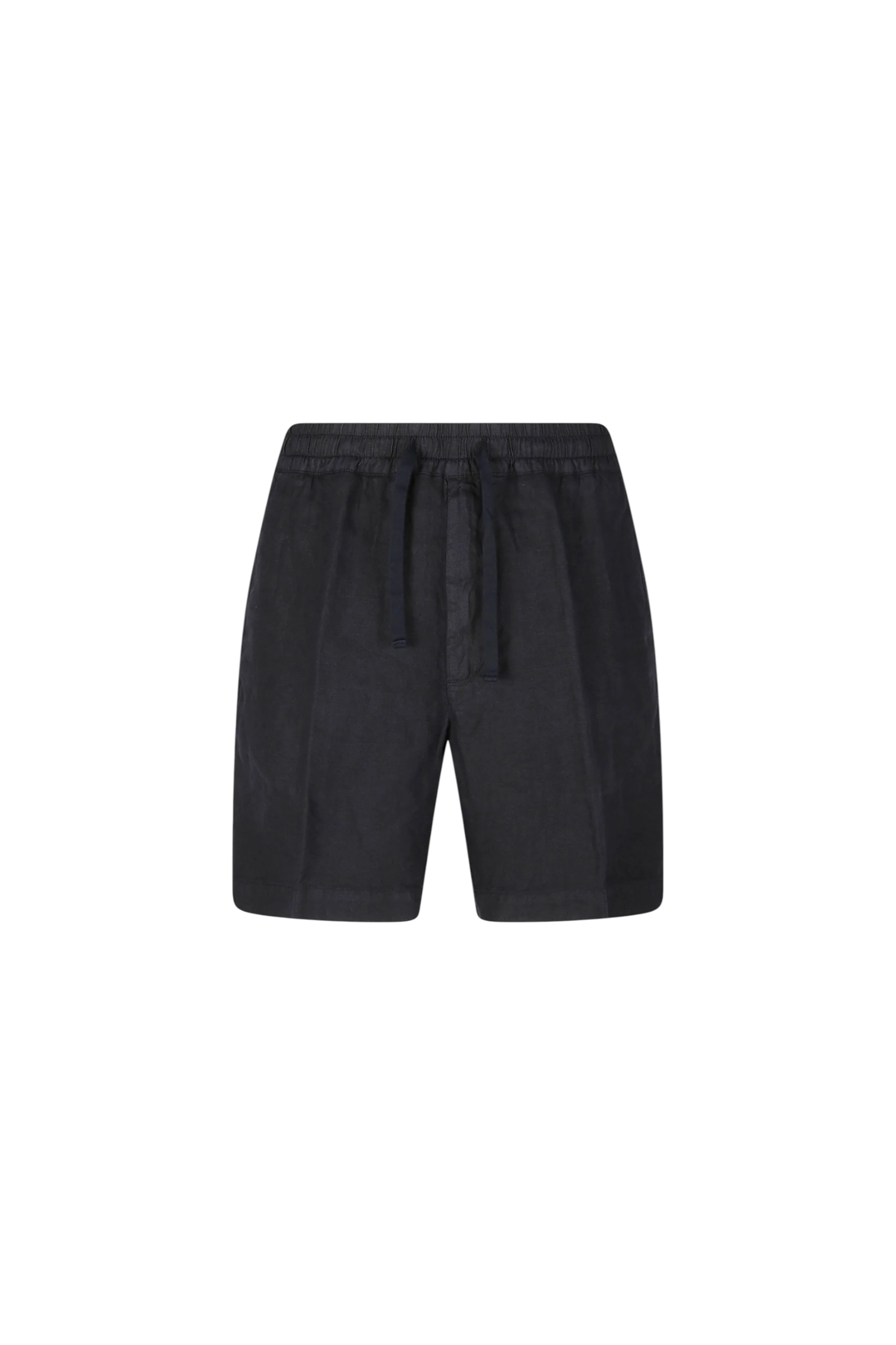 Легкие льняные шорты расслабленного силуэта дополнены эластичным регулируемым поясом и задними накладными карманами с застежкой на пуговицы.