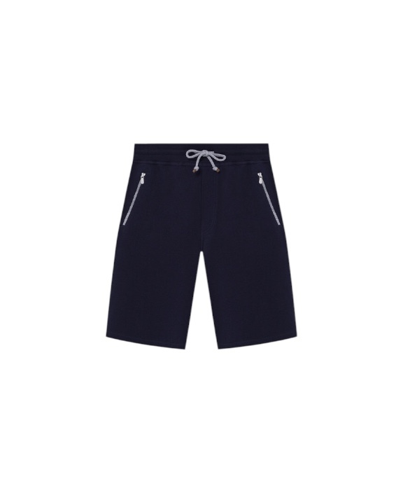 Шорты из коллекции Travelwear на эластичном регулируемом поясе с передними врезными карманами на молниях из технологичного трикотажа — гладкий снаружи и с вафельной текстурой на изнанке.