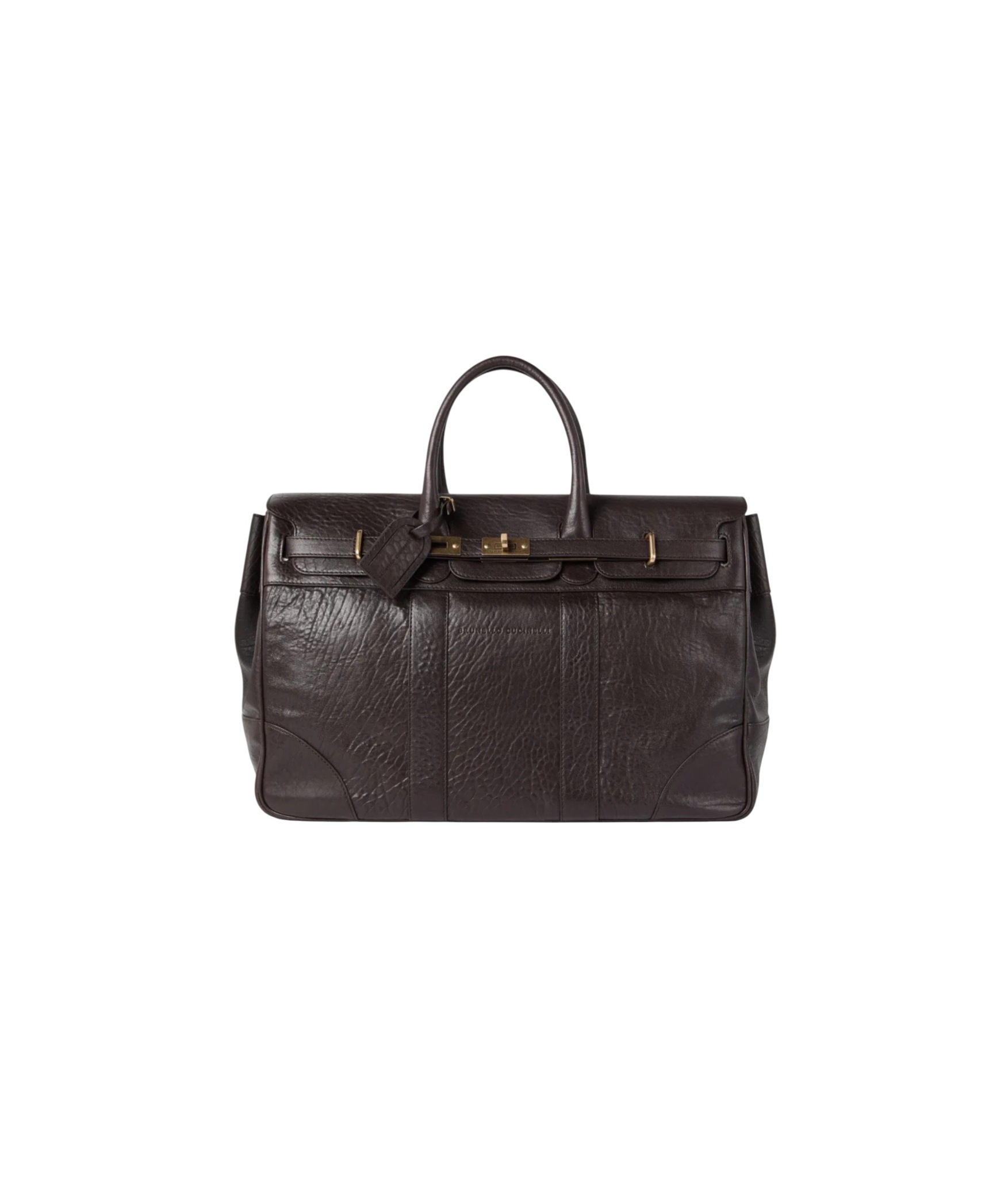 Дорожная сумка в винтажном стиле из натуральной кожи прекрасно подойдет для краткосрочных поездок. Используемые в качестве застежки магниты и металлические элементы персонализированы логотипом Brunello Cucinelli.