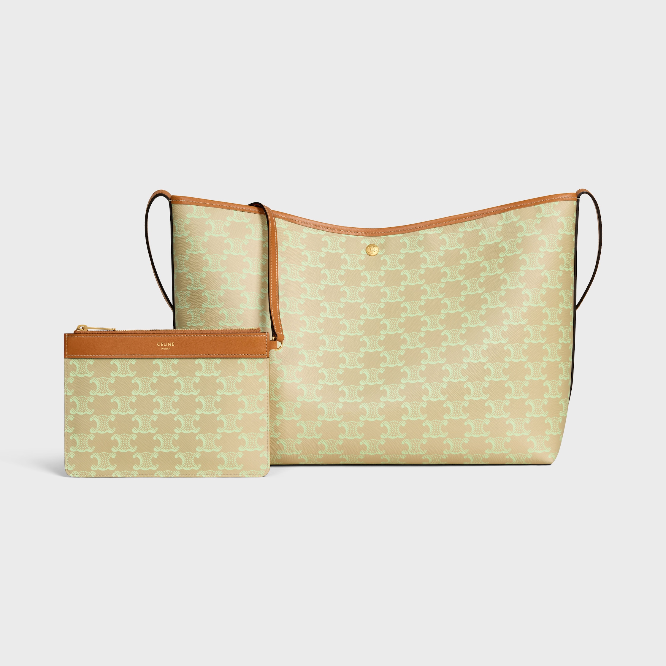 Стильная сумка-шоппер с регулируемым плечевым ремнем дополнена золотистой отделкой и украшена знаковой монограммой бренда по всему периметру.