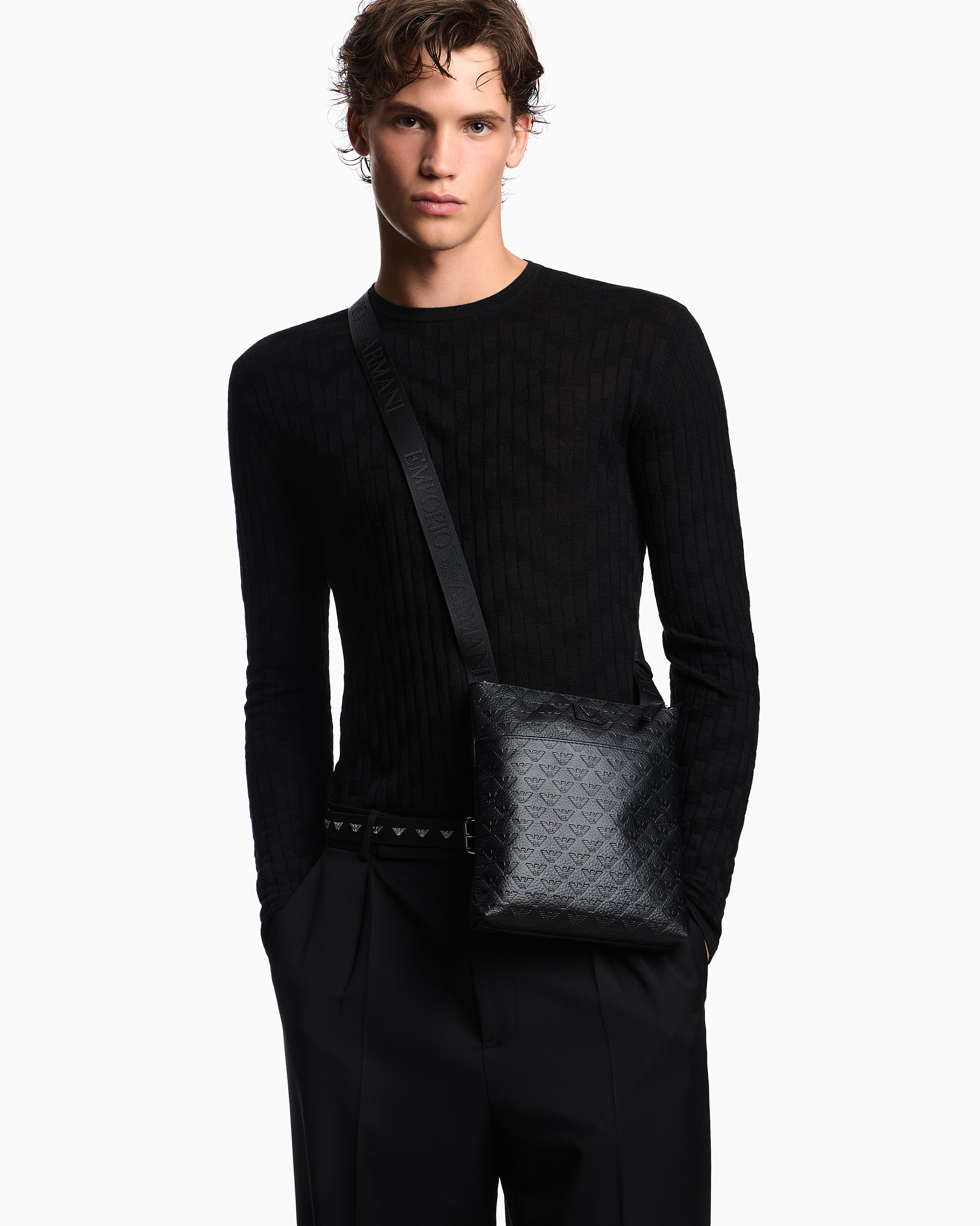 Стильная и удобная сумка с регулируемым плечевым ремнем украшена фирменным металлическим логотипом бренда.