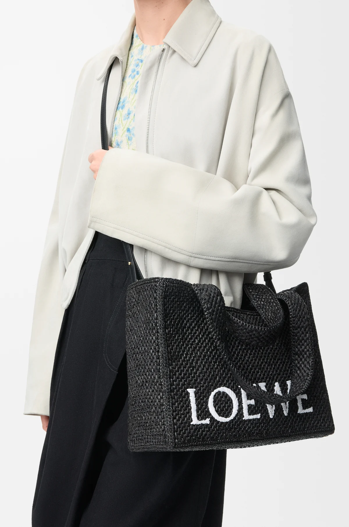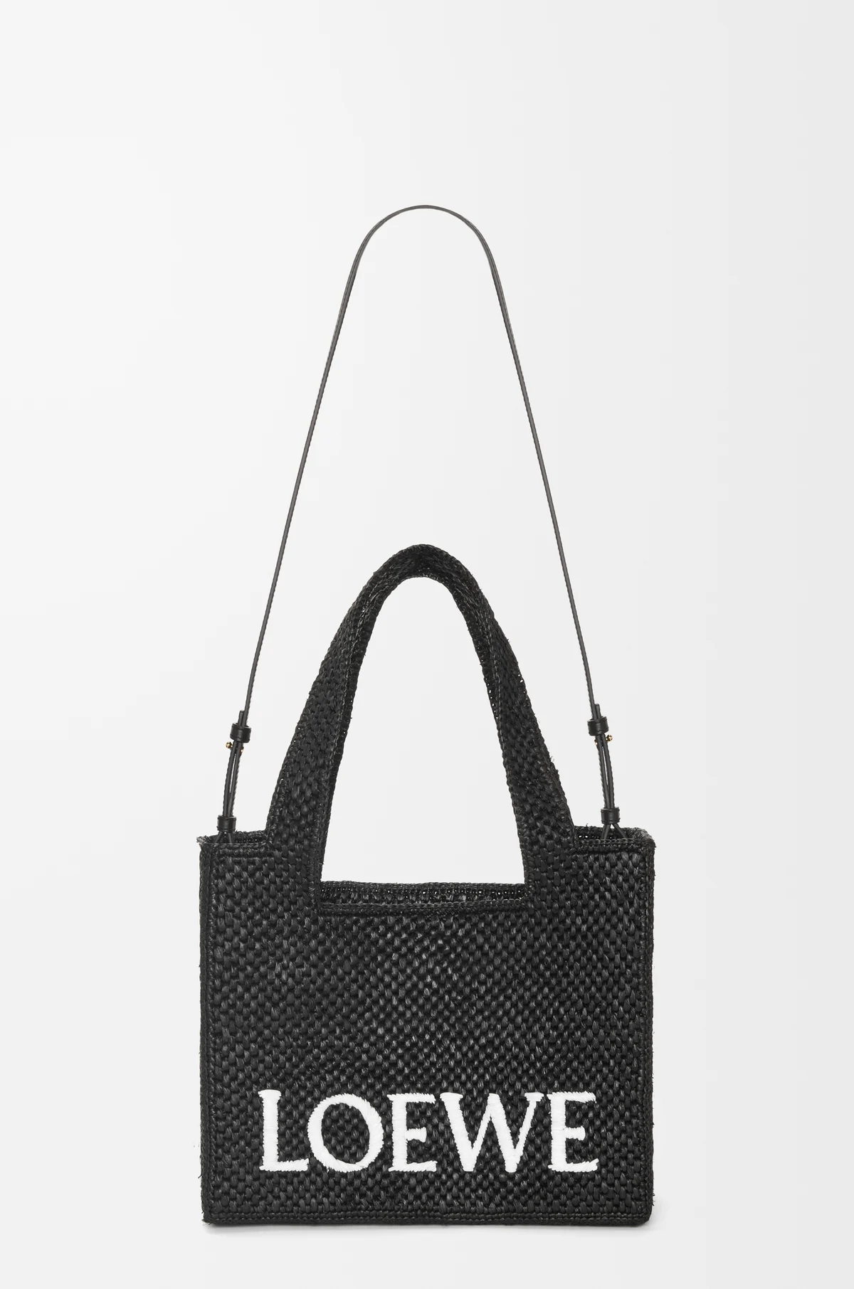 Сумка-тоут с контрастным логотипом бренда из листьев пальмы рафия, выращенных и сплетенных вручную мастерами на Мадагаскаре, дополнена двойными ручками и регулируемым плечевым ремнем.