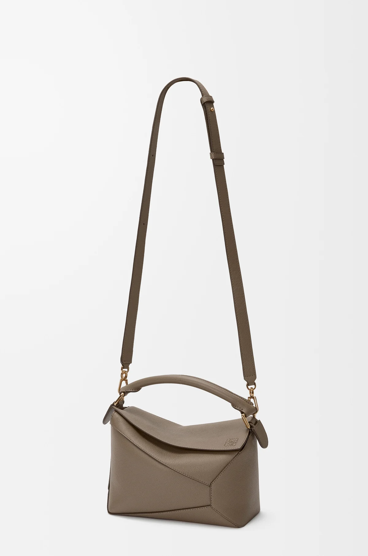Знаковая для бренда сумка Puzzle со съемным плечевым ремнем из асимметричных отрезов зернистой матовой кожи, сложенных в виде пазла: внутрь поместятся кошелек и планшет, во внешний карман на молнии – ключи.