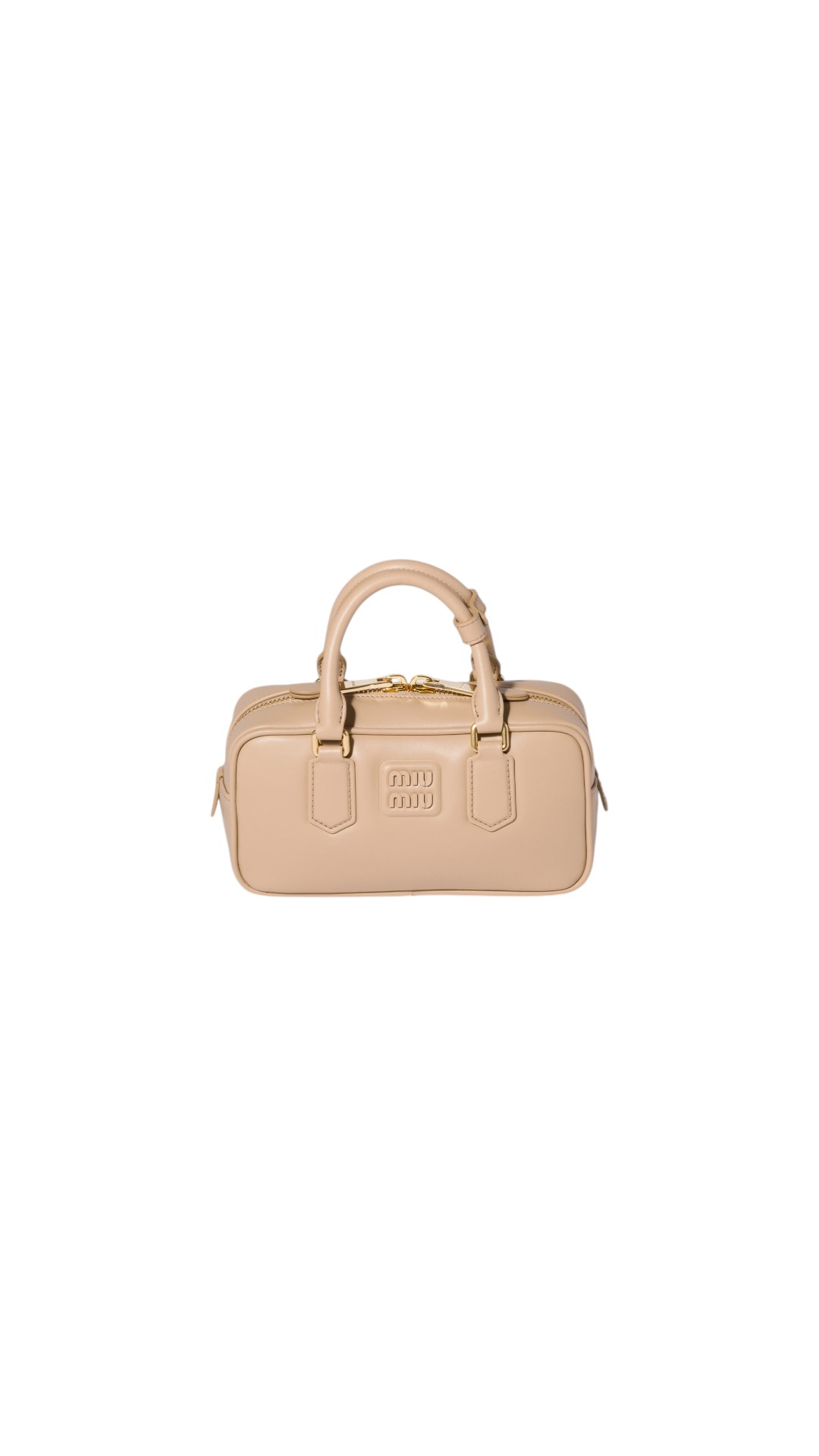 Сумка прямоугольной формы с двойными ручками и застежкой на молнию дополнена съемным регулируемым плечевым ремнем и украшена спереди тисненым логотипом бренда в тон.
