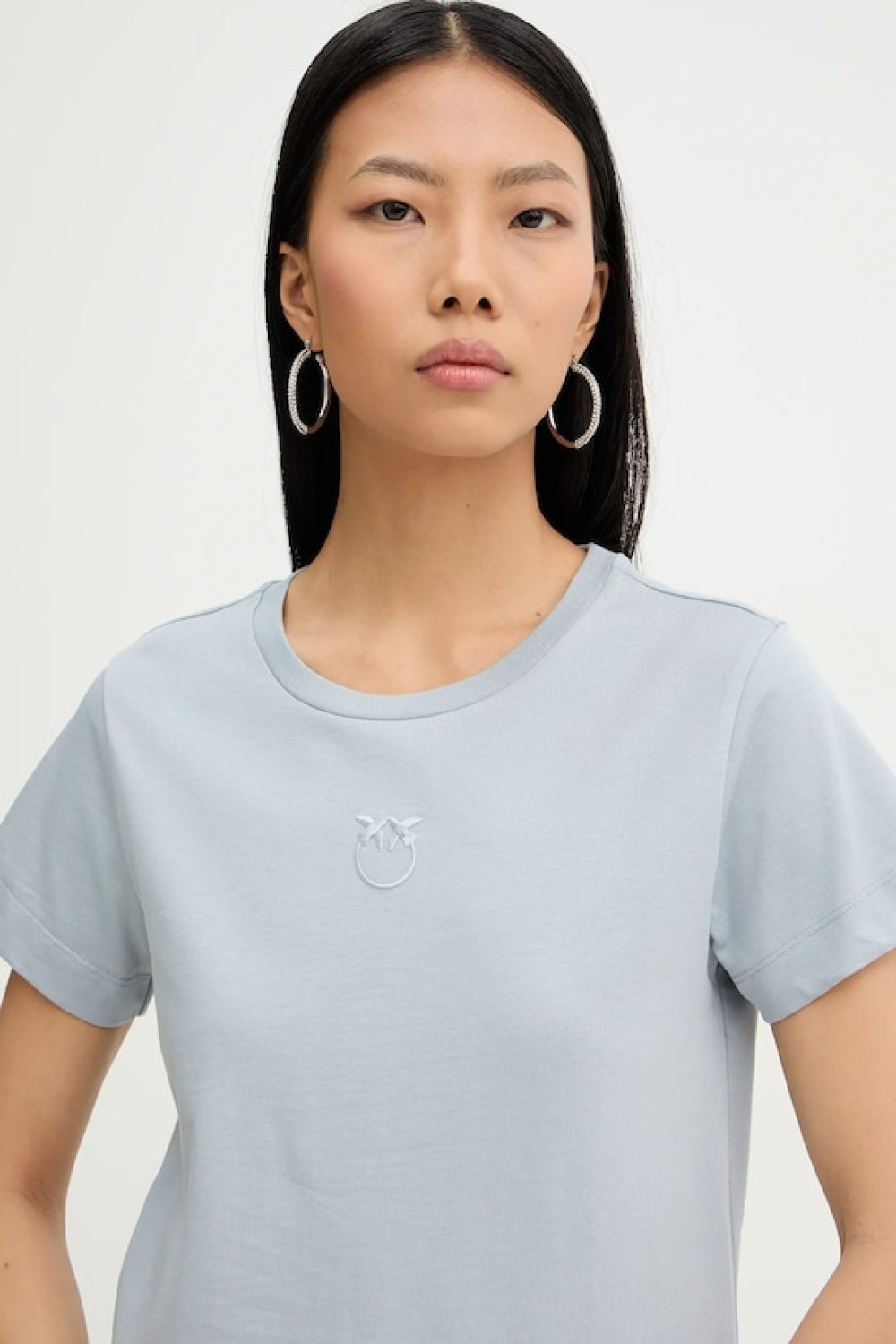 Футболка с круглой горловиной и короткими рукавами слегка расслабленного силуэта спереди дополнена фирменным логотипом бренда в тон.