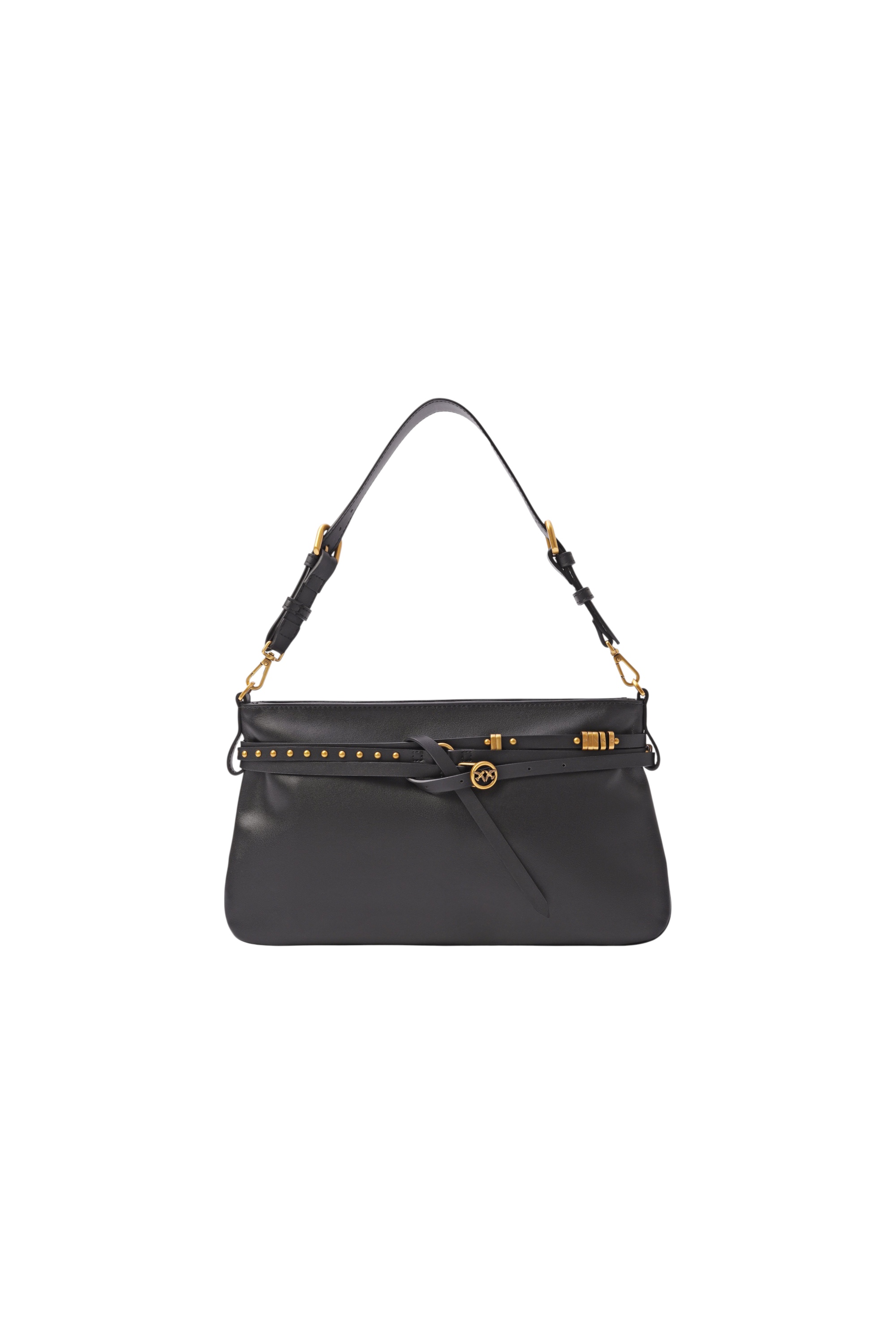 Стильная сумка из гладкой кожи с застежкой на молнию дополнена регулируемым плечевым ремнем.