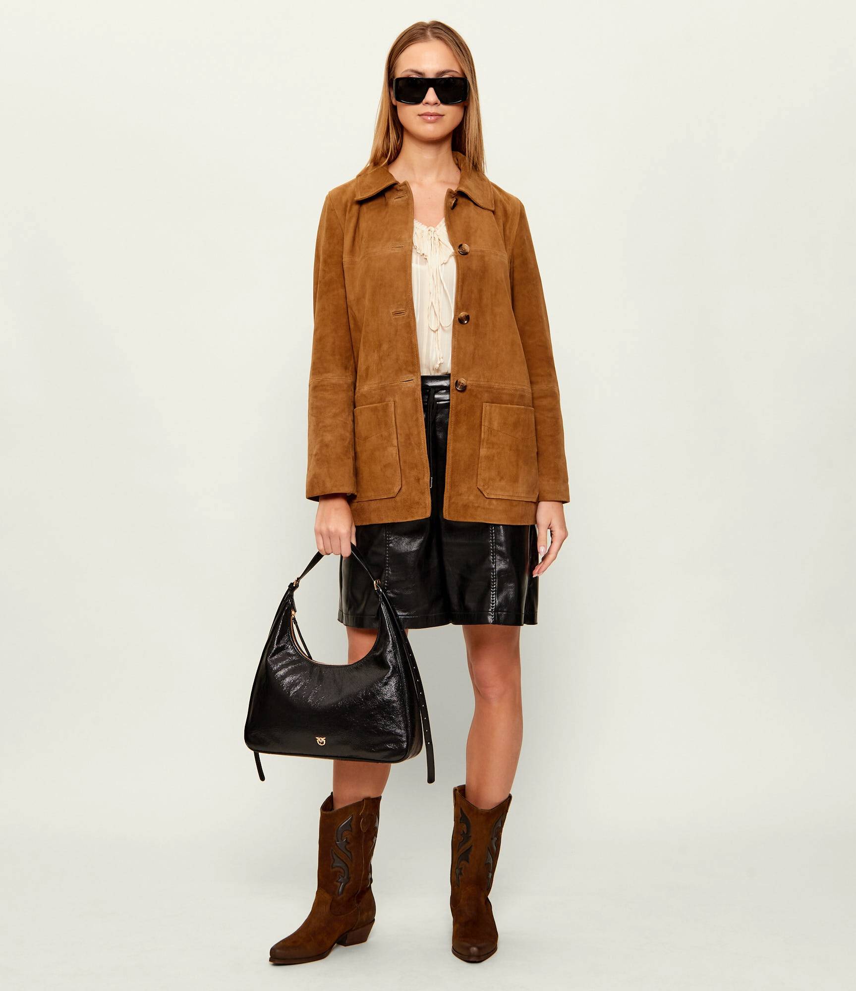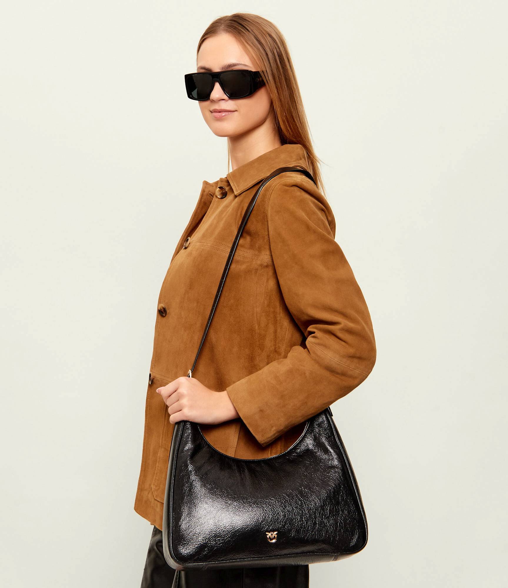 Сумка Miss Pinko Classic со регулируемым ремнем из натуральной кожи с застежкой на молнию украшена фирменным логотипом бренда Love Birds Diamond Cut.