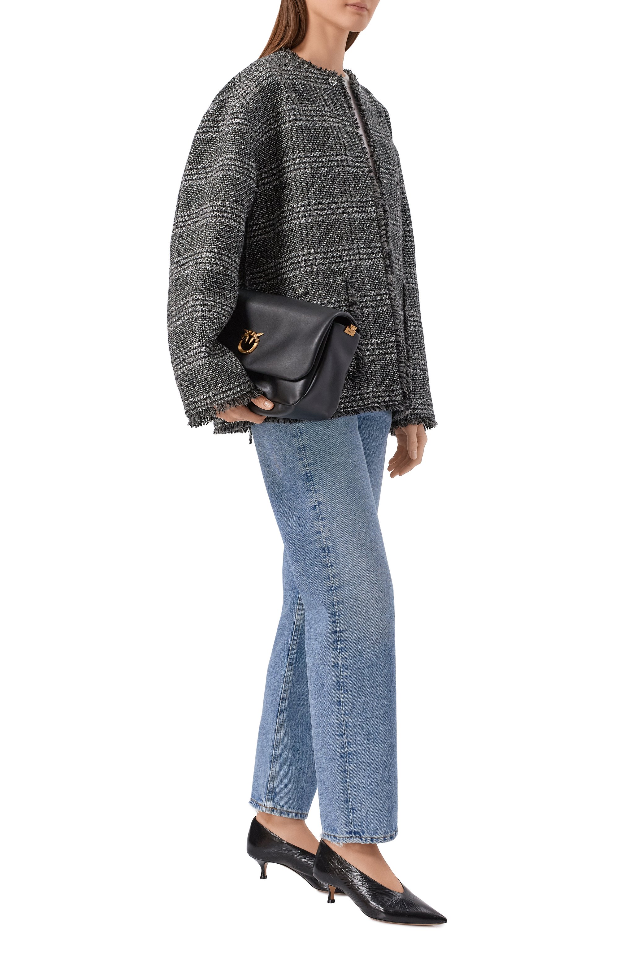 Сумку Love Click Soft со съемным регулируемым ремнем из телячьей кожи с двумя внутренними карманами на молниях закрывается клапаном с магнитными кнопками и пряжкой Love Birds Diamond Cut, которой вторит эмблема с NFC-меткой сзади.