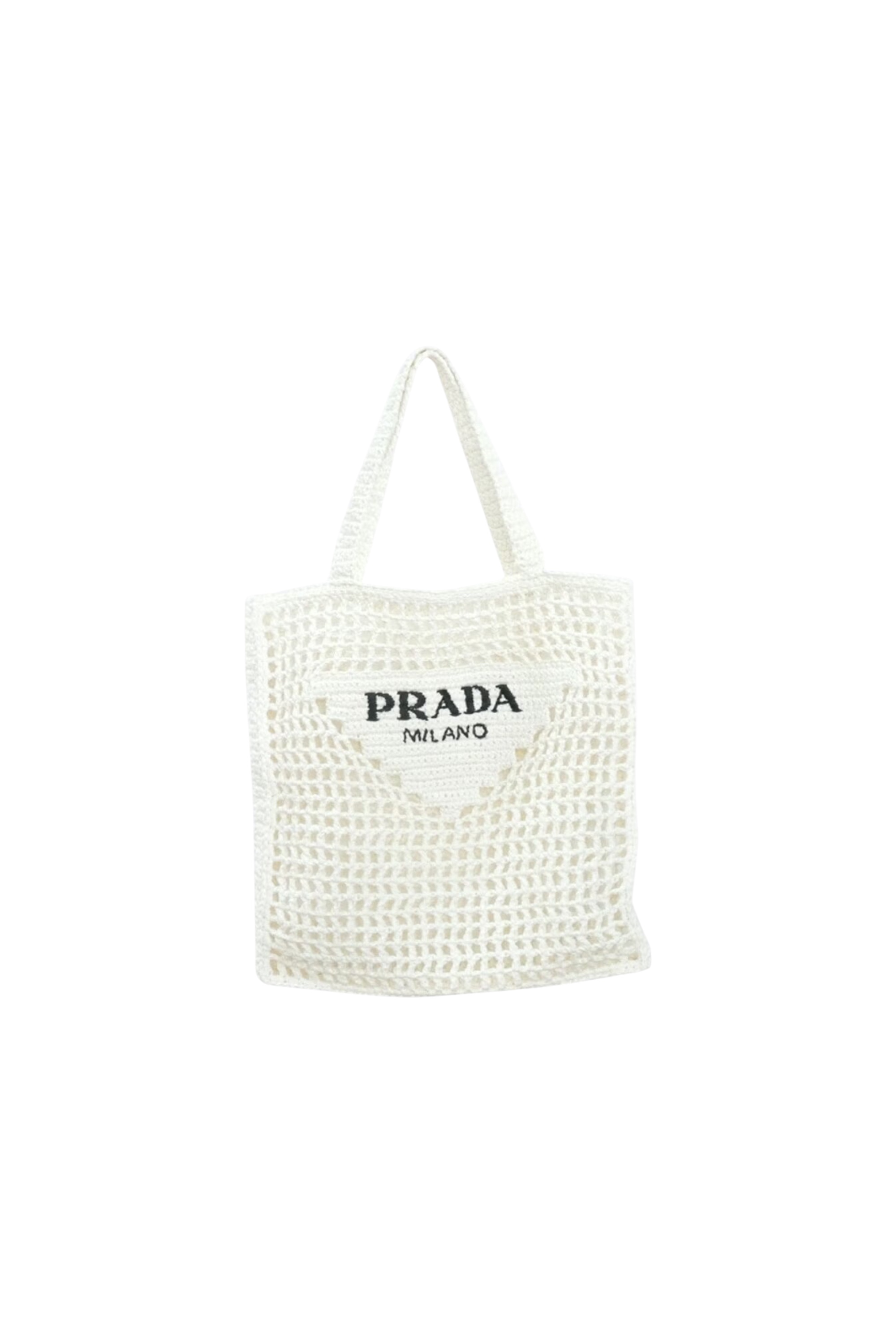 Вязаная сумка-тоут с двойными ручками украшена контрастным логотипом бренда.