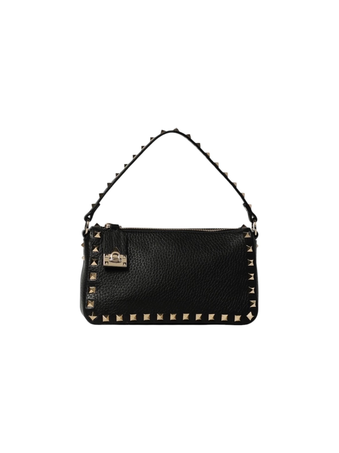 Сумку Rockstud с отделкой из знаковых шипов-пирамид дополнили карточным слотом внутри, а также длинной ручкой и съемным плечевым ремнем. Аксессуар из крупнозернистой телячьей кожи застегивается молнией с пуллером-защелкой.