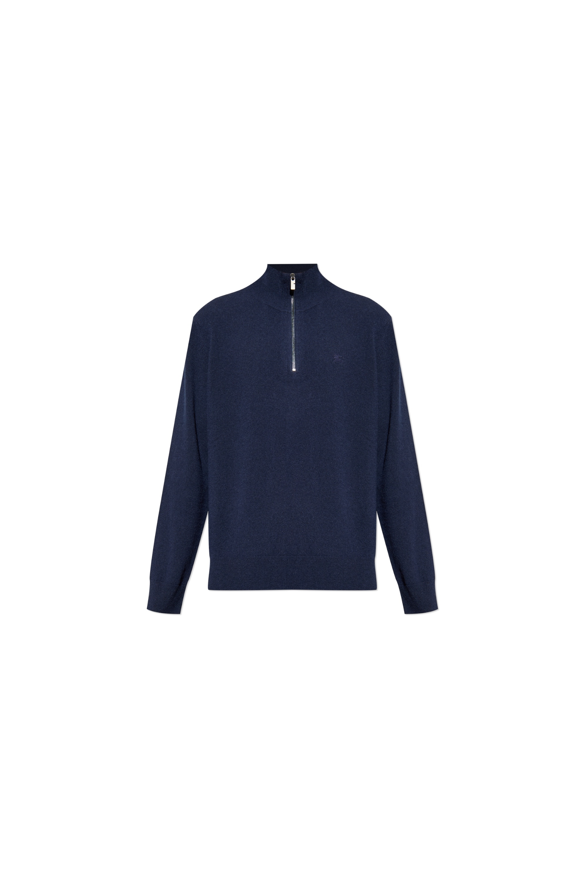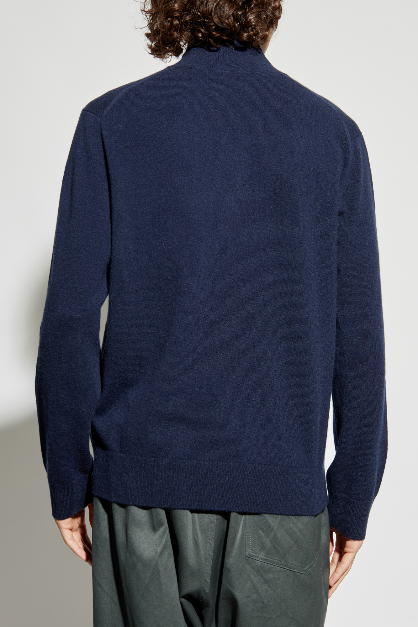 Свитер слегка расслабленного силуэта дополнен короткой застежкой на молнию и украшен вышитым логотипом бренда в тон.