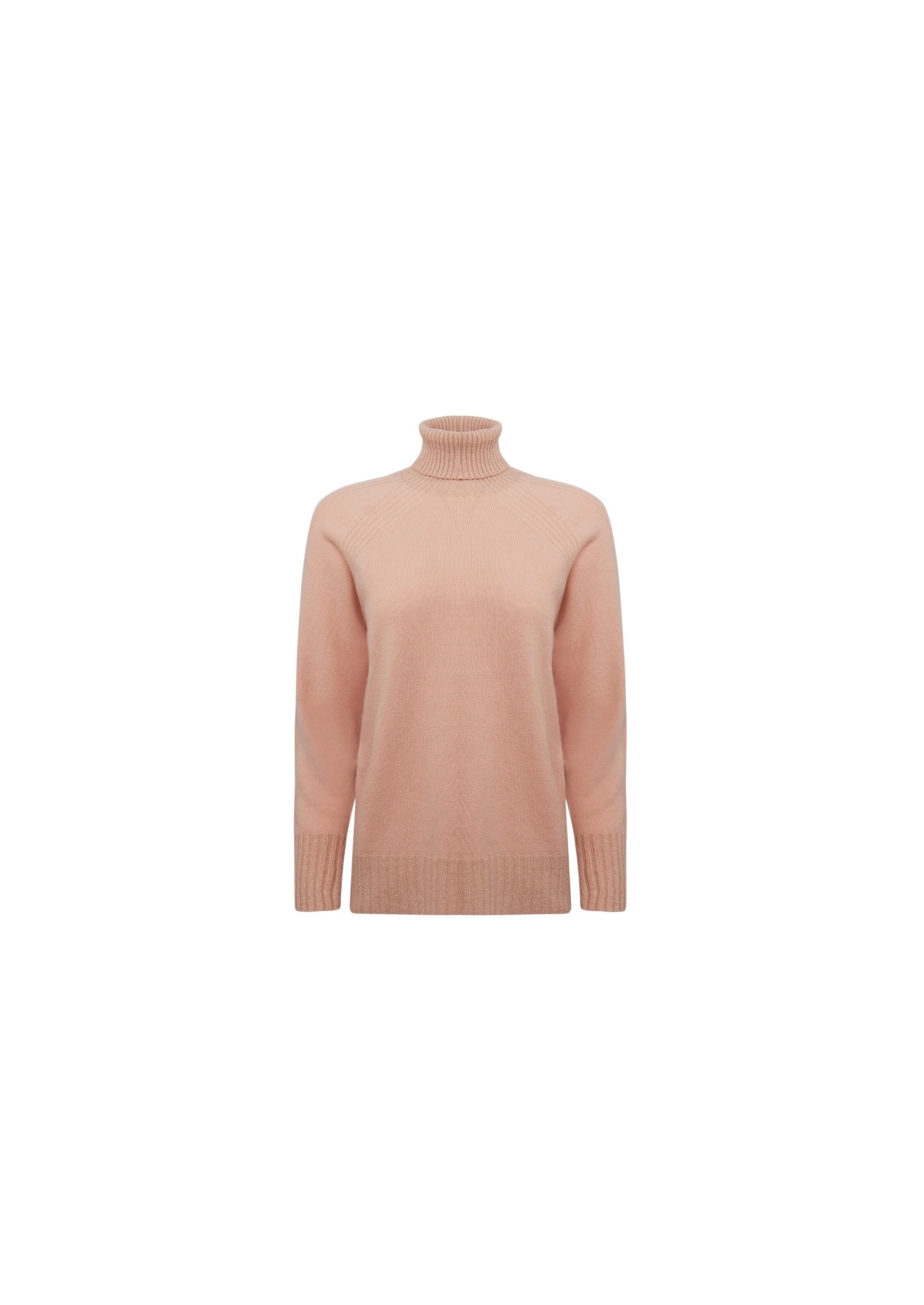 Свитер из сочетания натуральной шерсти и кашемира дополнен воротником-стойкой, длинными рукавами и отделкой в рубчик.