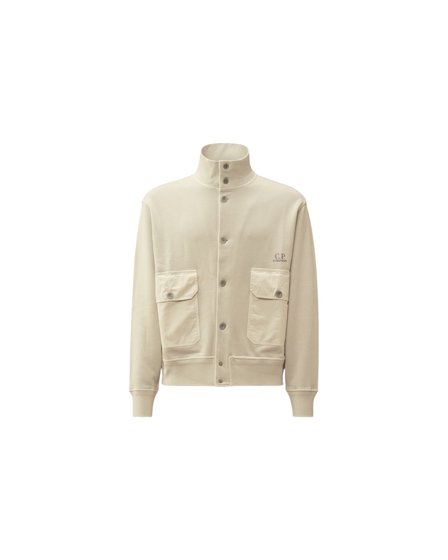 Свитшот прямого силуэта с застежкой на пуговицы дополнен эластичными манжетами, отложным воротником, накладными карманами и украшен вышитым логотипом бренда.