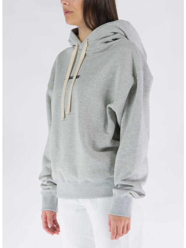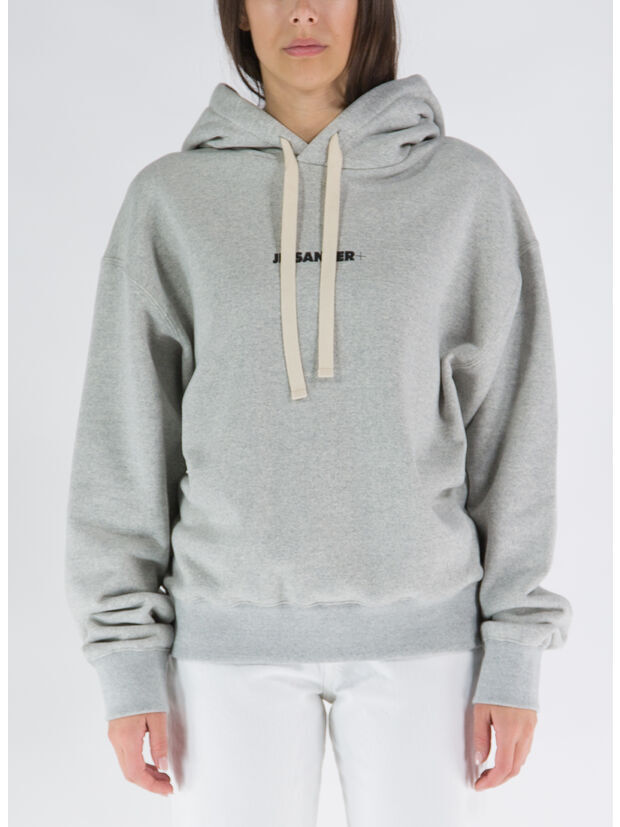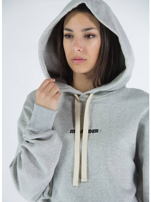 Женский свитшот Jil Snder с капюшоном. Модель из хлопковой махры с капюшоном и ребристыми краями.