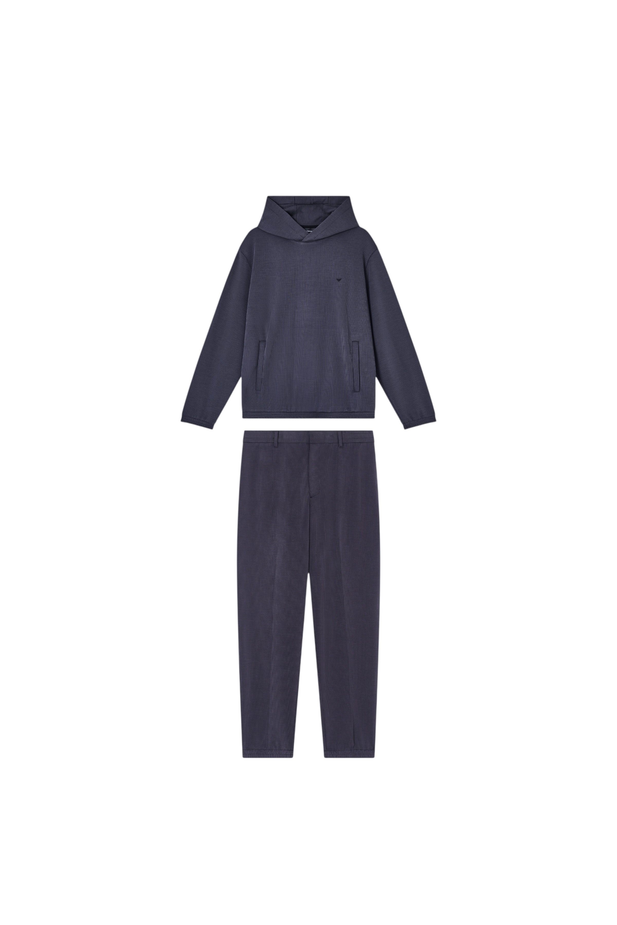 - текстурные брюки слегка расслабленного силуэта дополнены шлевками для ремня, двумя боковыми и прорезными карманами. Сзади изделие украсили фирменным логотипом бренда.