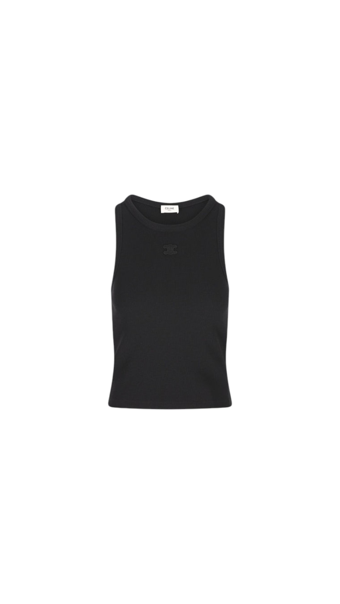 Базовый топ в рубчик приталенного силуэта с круглым вырезом на широких бретелях украшен спереди вышитой эмблемой бренда.