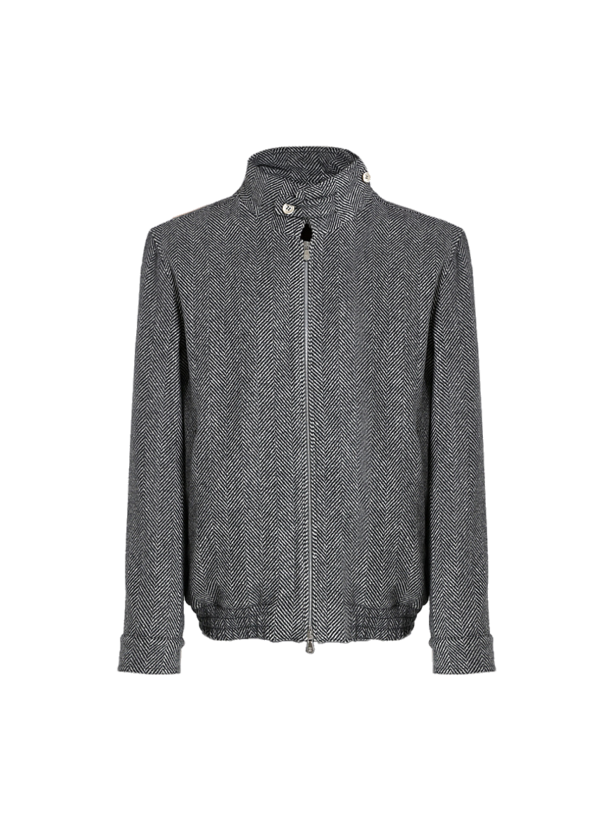 Куртка из смесовой шерсти полуприлегающего силуэта на манжетах дополнена эластичным поясом, прорезными карманами, отложным воротником и застежкой на молнию с двумя пуллерами. Полотно из натуральной шерсти представляет собой материал высокого качества с традиционным узором в ёлочку в элегантном мужском стиле, а подкладка из ткани купро повышает комфорт при носке.